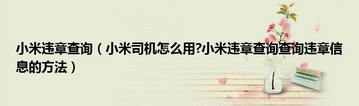 大家好,今天小悦来为大家解答以上问题。小米违章查询,小米司机怎么用?小米违章查询查询违章信息的方法很多人还不知道,现在让我们一起来看看吧!