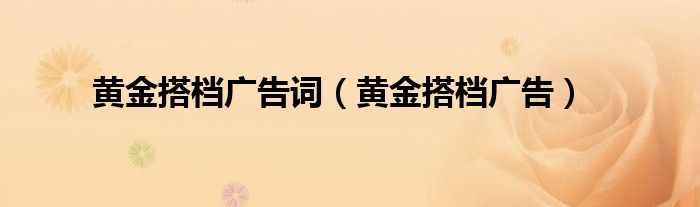 黄金搭档广告词,黄金搭档广告这个很多人还不知道,小飞来为大家解答以上的问题。现在让我们一起来看看吧!