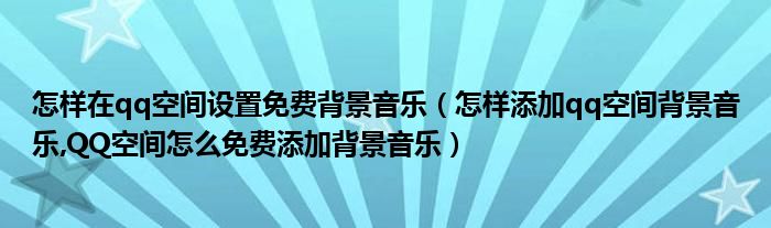 大家好,今天小悦来为大家解答以上问题。怎样在qq空间设置免费背景音乐,怎样添加qq空间背景音乐,QQ空间怎么免费添加背景音乐很多人还不知道,现在让我们一起来看看吧!