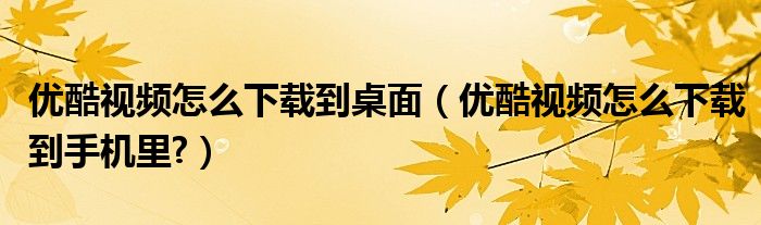 大家好,今天小悦来为大家解答以上问题。优酷视频怎么下载到桌面,优酷视频怎么下载到手机里?很多人还不知道,现在让我们一起来看看吧!