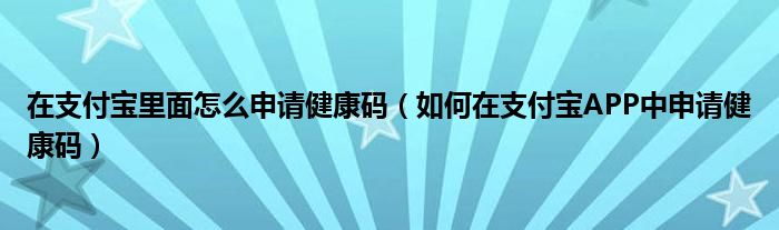 在支付宝里面怎么申请健康码(如何在支付宝APP中申请健康码)
