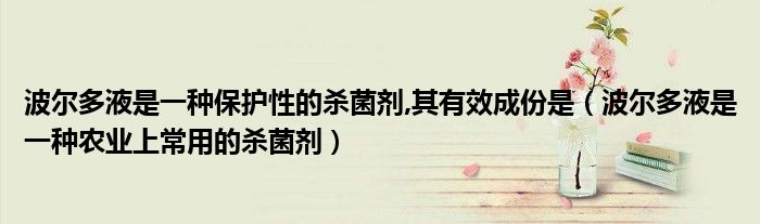 波尔多液是一种保护性的杀菌剂,其有效成份是(波尔多液是一种农业上常用的杀菌剂)