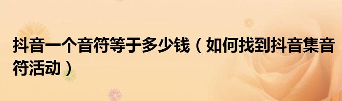 大家好,今天小悦来为大家解答以上问题。抖音一个音符等于多少钱,如何找到抖音集音符活动很多人还不知道,现在让我们一起来看看吧!