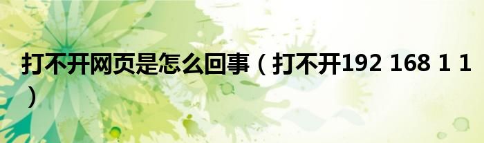 大家好,小飞来为大家解答以上问题,打不开网页是怎么回事,打不开192 168 1 1很多人还不知道,现在让我们一起来看看吧!