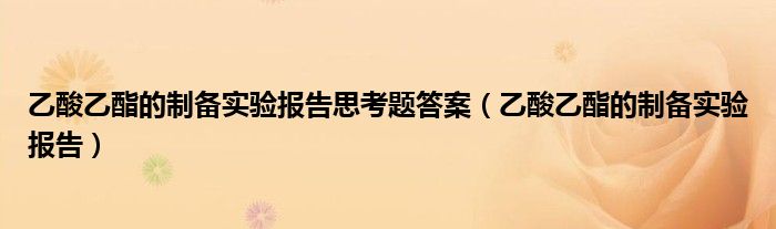 乙酸乙酯的制备实验报告思考题答案,乙酸乙酯的制备实验报告这个很多人还不知道,小飞来为大家解答以上的问题。现在让我们一起来看看吧!