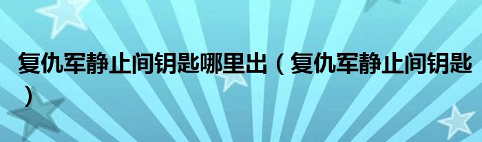 复仇军静止间钥匙哪里出,复仇军静止间钥匙这个很多人还不知道,小飞来为大家解答以上的问题。现在让我们一起来看看吧!