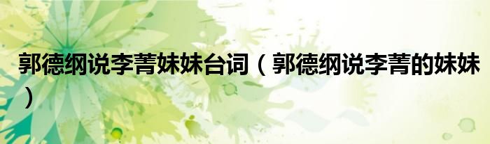 郭德纲说李菁妹妹台词,郭德纲说李菁的妹妹这个很多人还不知道,小飞来为大家解答以上的问题。现在让我们一起来看看吧!