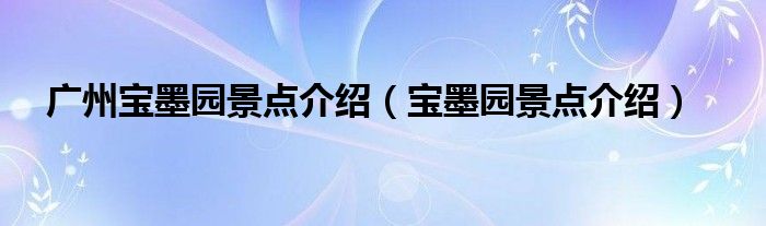 广州宝墨园景点介绍(宝墨园景点介绍)