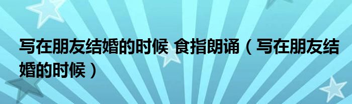 大家好,小飞来为大家解答以上的问题。写在朋友结婚的时候 食指朗诵,写在朋友结婚的时候这个很多人还不知道,现在让我们一起来看看吧!