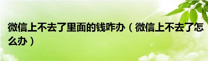 微信上不去了里面的钱咋办(微信上不去了怎么办)