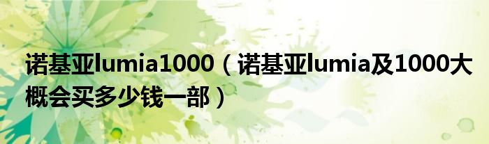 大家好,小常来为大家解答以上问题。诺基亚lumia1000,诺基亚lumia及1000大概会买多少钱一部很多人还不知道,现在让我们一起来看看吧!