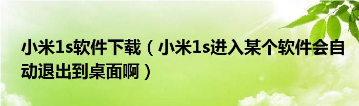 大家好,小常来为大家解答以上问题。小米1s软件下载,小米1s进入某个软件会自动退出到桌面啊很多人还不知道,现在让我们一起来看看吧!