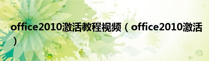 大家好,慧慧来为大家解答以上问题,office2010激活教程视频,office2010激活很多人还不知道,现在让我们一起来看看吧!