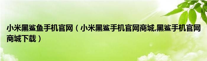 大家好,小常来为大家解答以上问题。小米黑鲨鱼手机官网,小米黑鲨手机官网商城,黑鲨手机官网商城下载很多人还不知道,现在让我们一起来看看吧!