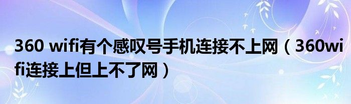 大家好,慧慧来为大家解答以上问题,360 wifi有个感叹号手机连接不上网,360wifi连接上但上不了网很多人还不知道,现在让我们一起来看看吧!