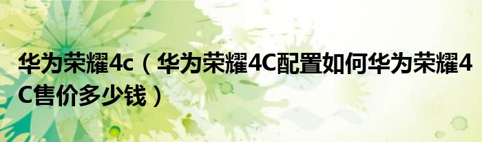1,华为荣耀4C配置如何?华为荣耀4C售价多少钱 :不是荣耀4C,是荣耀畅玩4C.配置分辨率不行,千元机都1080p的分辨率了。荣耀畅玩4C还720p,价格799.