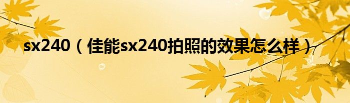1,佳能sx240拍照的效果怎么样 :佳能的长焦机。拥有20倍的光学变焦。25的广角 1210万有效像素。3.0LCD屏 5的处理器。且机身重量厚度适中。值得选择的好机器。佳能是生产相机最专业的,拍摄的效果任何机器无法比拟。这个你可放心。