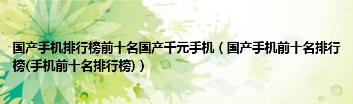 大家好,小常来为大家解答以上问题。国产手机排行榜前十名国产千元手机,国产手机前十名排行榜(手机前十名排行榜)很多人还不知道,现在让我们一起来看看吧!