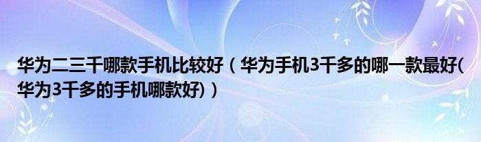 大家好,小常来为大家解答以上问题。华为二三千哪款手机比较好,华为手机3千多的哪一款最好(华为3千多的手机哪款好)很多人还不知道,现在让我们一起来看看吧!