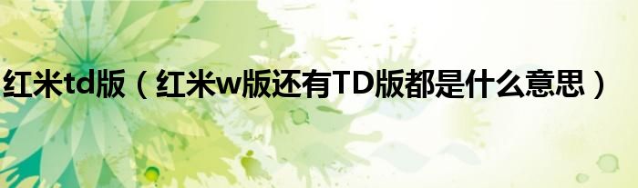 大家好,小常来为大家解答以上问题。红米td版,红米w版还有TD版都是什么意思很多人还不知道,现在让我们一起来看看吧!
