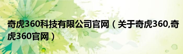 奇虎360科技有限公司官网(关于奇虎360,奇虎360官网)