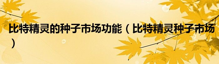 关于比特精灵的种子市场功能,比特精灵种子市场这个很多人还不知道,今天菲菲来为大家解答以上的问题,现在让我们一起来看看吧!
