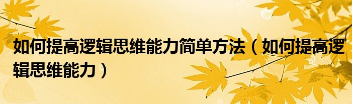 关于如何提高逻辑思维能力简单方法,如何提高逻辑思维能力这个很多人还不知道,今天菲菲来为大家解答以上的问题,现在让我们一起来看看吧!