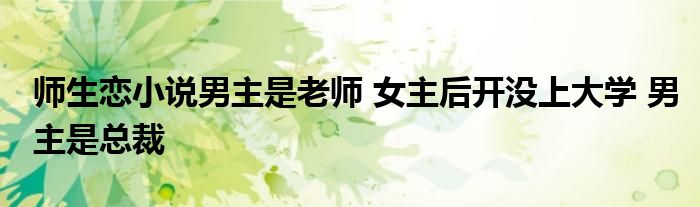 关于师生恋小说男主是老师 女主后开没上大学 男主是总裁这个很多人还不知道,今天菲菲来为大家解答以上的问题,现在让我们一起来看看吧!