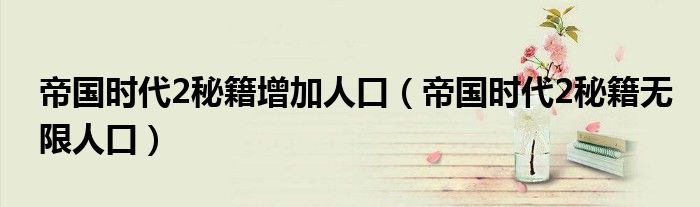 关于帝国时代2秘籍增加人口,帝国时代2秘籍无限人口这个很多人还不知道,今天菲菲来为大家解答以上的问题,现在让我们一起来看看吧!