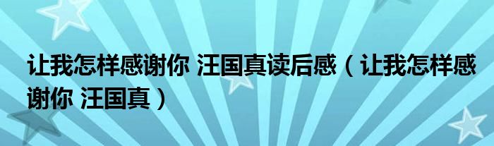 关于让我怎样感谢你 汪国真读后感,让我怎样感谢你 汪国真这个很多人还不知道,今天菲菲来为大家解答以上的问题,现在让我们一起来看看吧!