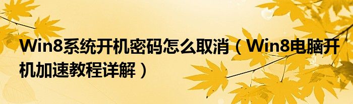大家好,今天小悦来为大家解答以上问题。Win8系统开机密码怎么取消,Win8电脑开机加速教程详解很多人还不知道,现在让我们一起来看看吧!