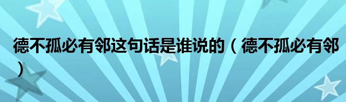 关于德不孤必有邻这句话是谁说的,德不孤必有邻这个很多人还不知道,今天菲菲来为大家解答以上的问题,现在让我们一起来看看吧!