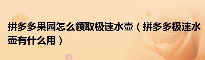 大家好,跳跳为你解答以上问题。拼多多果园怎么领取极速水壶,拼多多极速水壶有什么用这个问题很多人还不知道,现在让我们一起来看看吧!