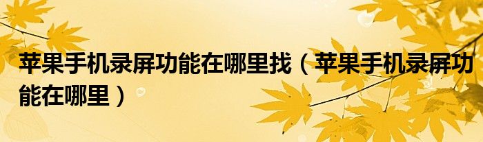 苹果手机录屏功能在哪里找(苹果手机录屏功能在哪里)
