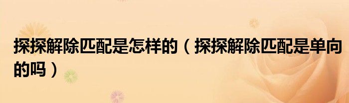 探探解除匹配是怎样的(探探解除匹配是单向的吗)