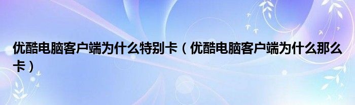 解答:1、优酷客户端这么卡的原因: