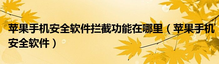 大家好,慧慧来为大家解答以上问题,苹果手机安全软件拦截功能在哪里,苹果手机安全软件很多人还不知道,现在让我们一起来看看吧!