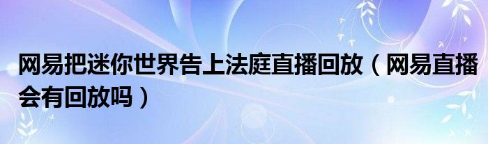 大家好,跳跳为你解答以上问题。网易把迷你世界告上法庭直播回放,网易直播会有回放吗这个问题很多人还不知道,现在让我们一起来看看吧!