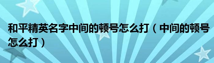 关于和平精英名字中间的顿号怎么打,中间的顿号怎么打这个很多人还不知道,今天菲菲来为大家解答以上的问题,现在让我们一起来看看吧!
