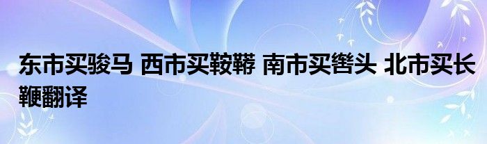 关于东市买骏马 西市买鞍鞯 南市买辔头 北市买长鞭翻译这个很多人还不知道,今天菲菲来为大家解答以上的问题,现在让我们一起来看看吧!