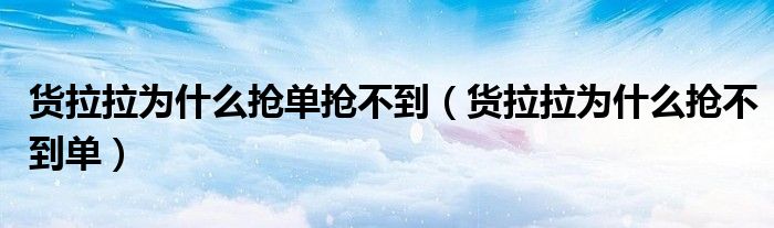 大家好,跳跳为你解答以上问题。货拉拉为什么抢单抢不到,货拉拉为什么抢不到单这个问题很多人还不知道,现在让我们一起来看看吧!