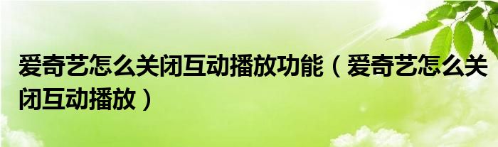 大家好,跳跳为你解答以上问题。爱奇艺怎么关闭互动播放功能,爱奇艺怎么关闭互动播放这个问题很多人还不知道,现在让我们一起来看看吧!