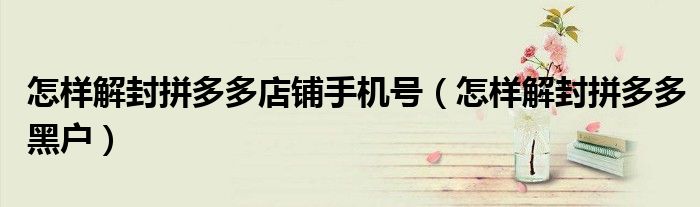 大家好,跳跳为你解答以上问题。怎样解封拼多多店铺手机号,怎样解封拼多多黑户这个问题很多人还不知道,现在让我们一起来看看吧!
