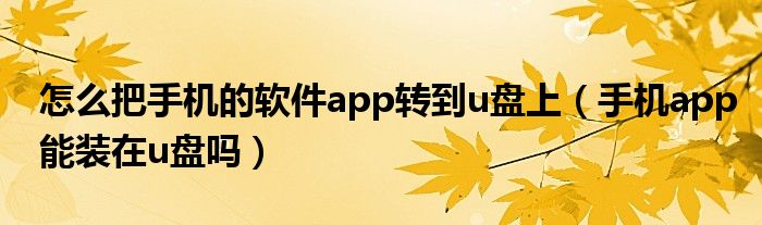 大家好,跳跳为你解答以上问题。怎么把手机的软件app转到u盘上,手机app能装在u盘吗这个问题很多人还不知道,现在让我们一起来看看吧!