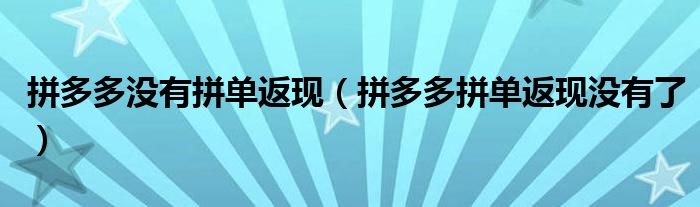 大家好,跳跳为你解答以上问题。拼多多没有拼单返现,拼多多拼单返现没有了这个问题很多人还不知道,现在让我们一起来看看吧!