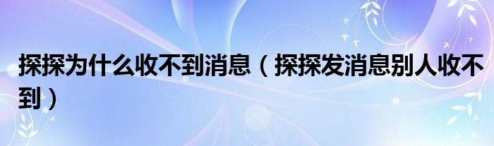 大家好,跳跳为你解答以上问题。探探为什么收不到消息,探探发消息别人收不到这个问题很多人还不知道,现在让我们一起来看看吧!