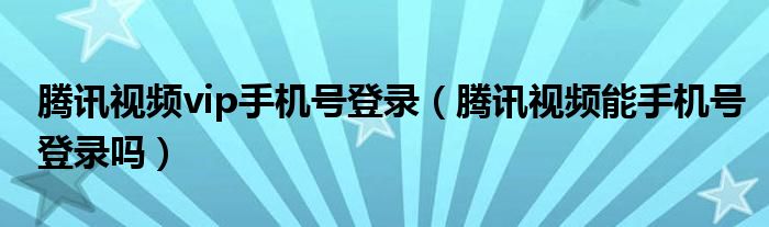 大家好,跳跳为你解答以上问题。腾讯视频vip手机号登录,腾讯视频能手机号登录吗这个问题很多人还不知道,现在让我们一起来看看吧!