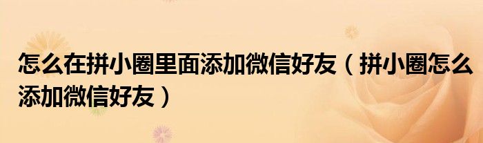 大家好,跳跳为你解答以上问题。怎么在拼小圈里面添加微信好友,拼小圈怎么添加微信好友这个问题很多人还不知道,现在让我们一起来看看吧!