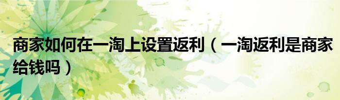 大家好,跳跳为你解答以上问题。商家如何在一淘上设置返利,一淘返利是商家给钱吗这个问题很多人还不知道,现在让我们一起来看看吧!