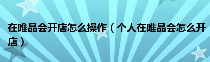 大家好,跳跳为你解答以上问题。在唯品会开店怎么操作,个人在唯品会怎么开店这个问题很多人还不知道,现在让我们一起来看看吧!